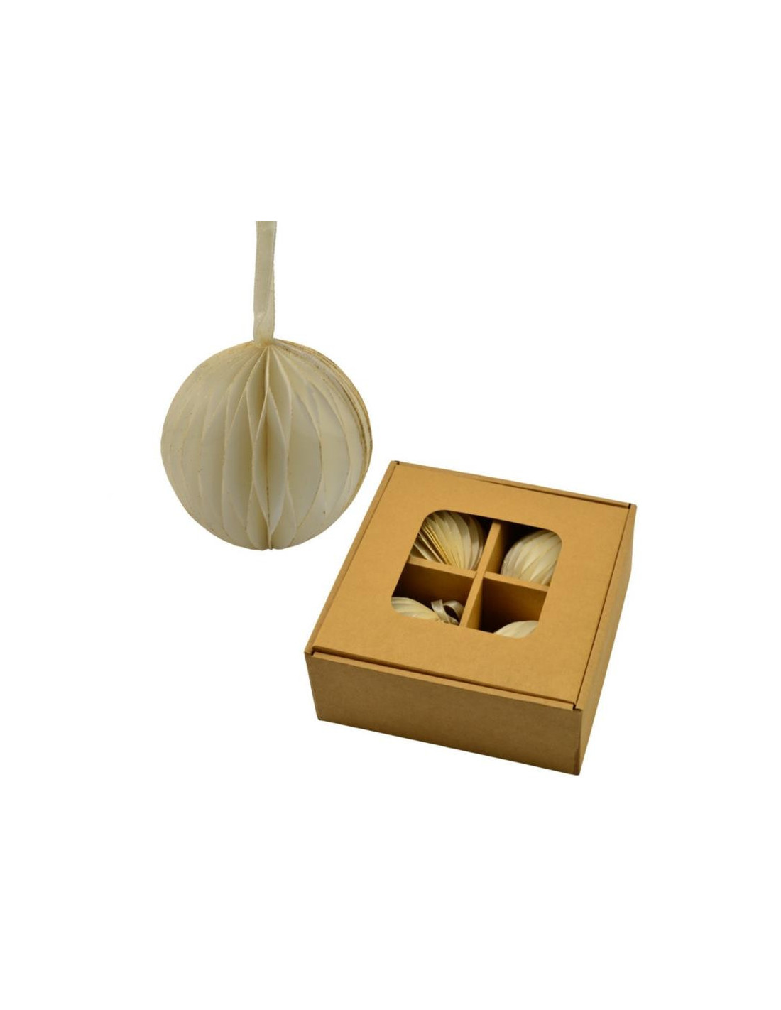 Bombki 4szt 7cm białe papierowe 2044
