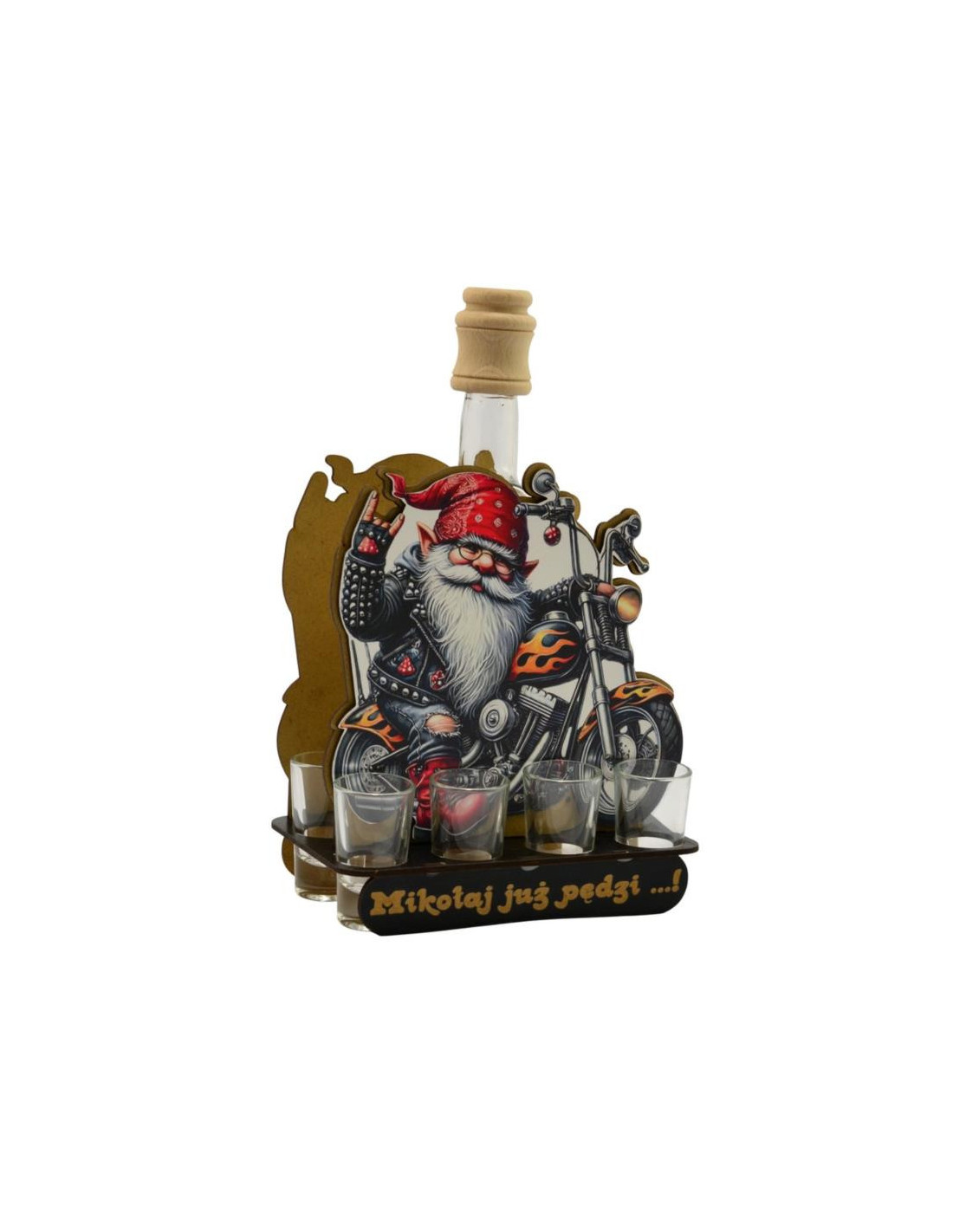 Karafka szklana Mikołaj na motorze 849 +6 kieliszków
