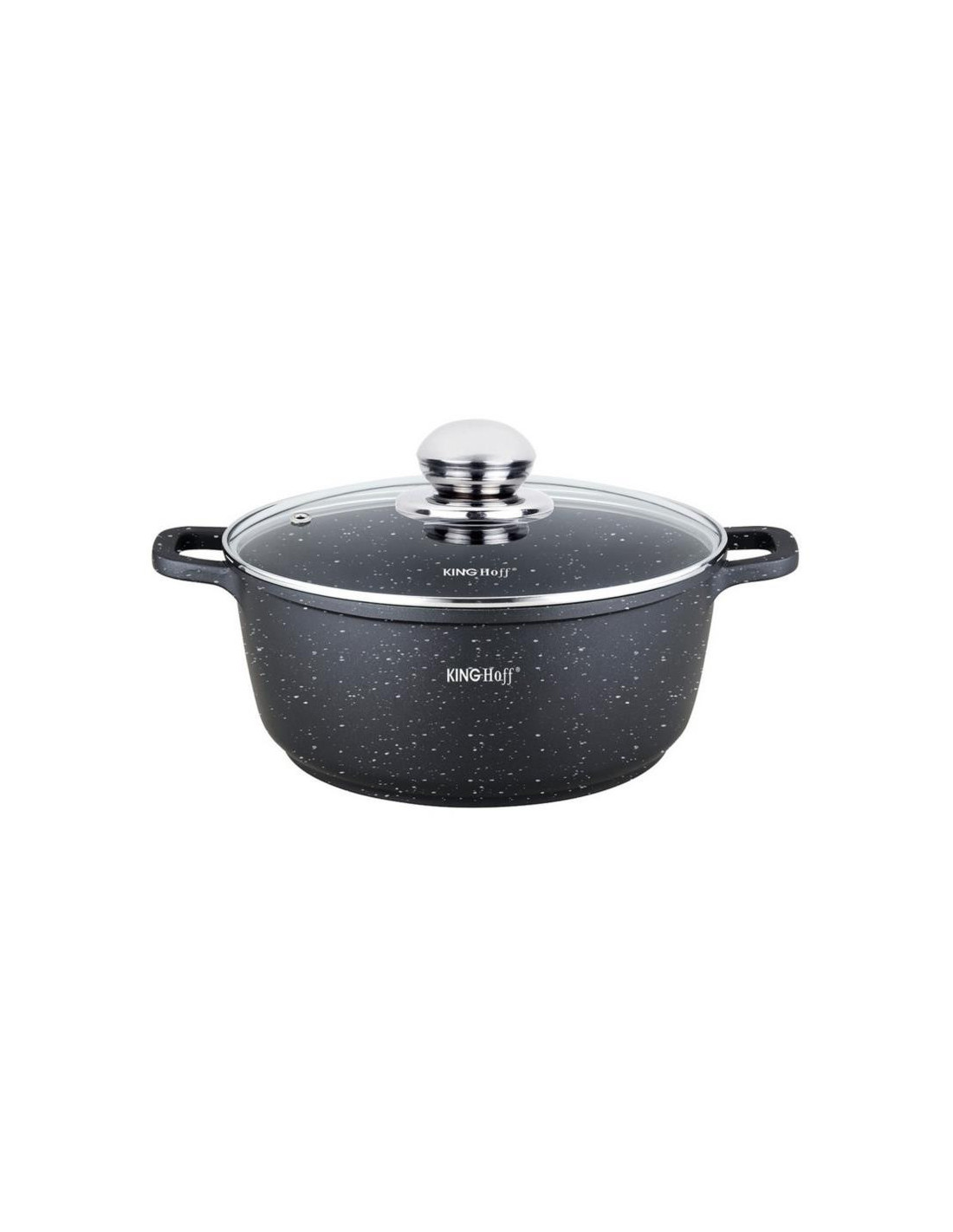 Odlewany niski garnek żaroodporny z powłoką marmurkową, umożliwiającą zdrowe gotowanie.
