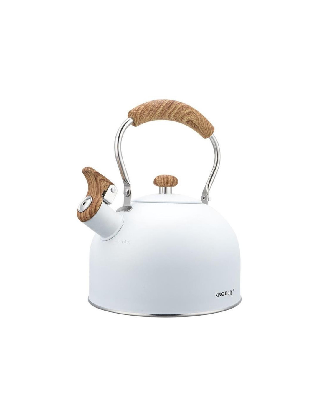 Czajnik z gwizdkiem, 2,5L, biały, z drewnopodobną rączką, KINGHoff KH-1860