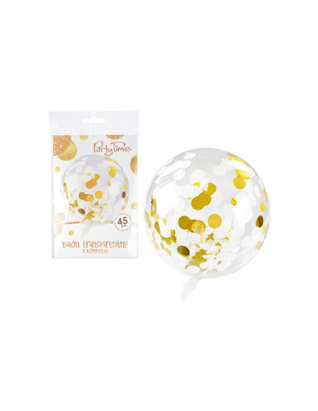 Balon z konfetti przeźroczysty 45cm 0041 biały/złoty