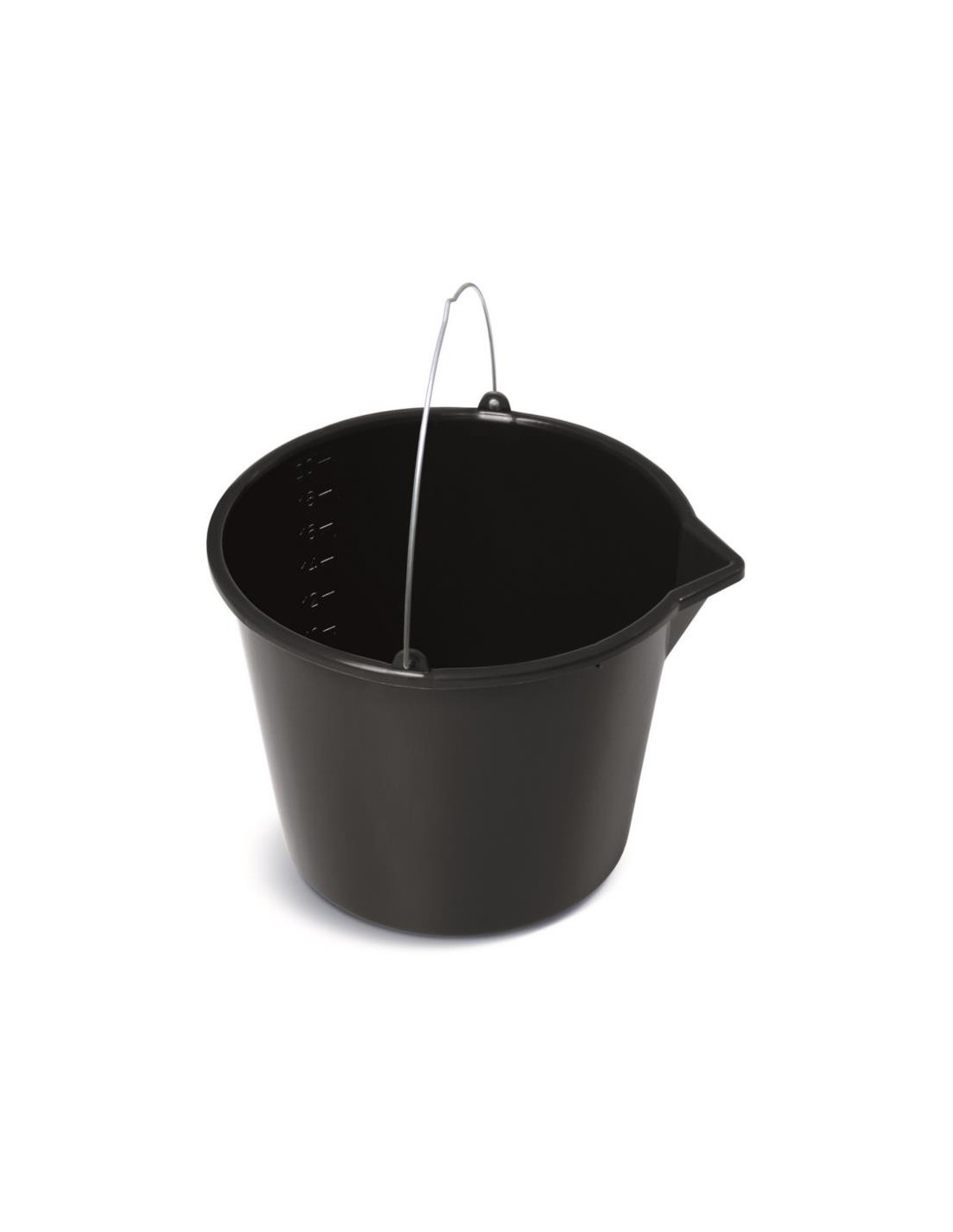 Wiadro posiada wygodną wylewkę ułatwiającą opróżnianie zawartości. Solidny uchwyt wykonany jest z drutu stalowego.Kolor: Czarny