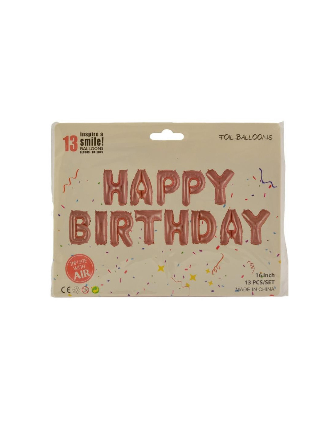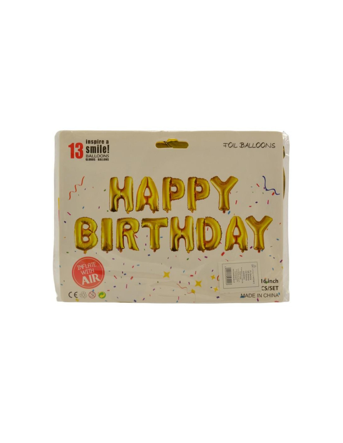 Zestaw balonów LITEREK układających się w urodzinowy napis HAPPY BIRTHDAY.