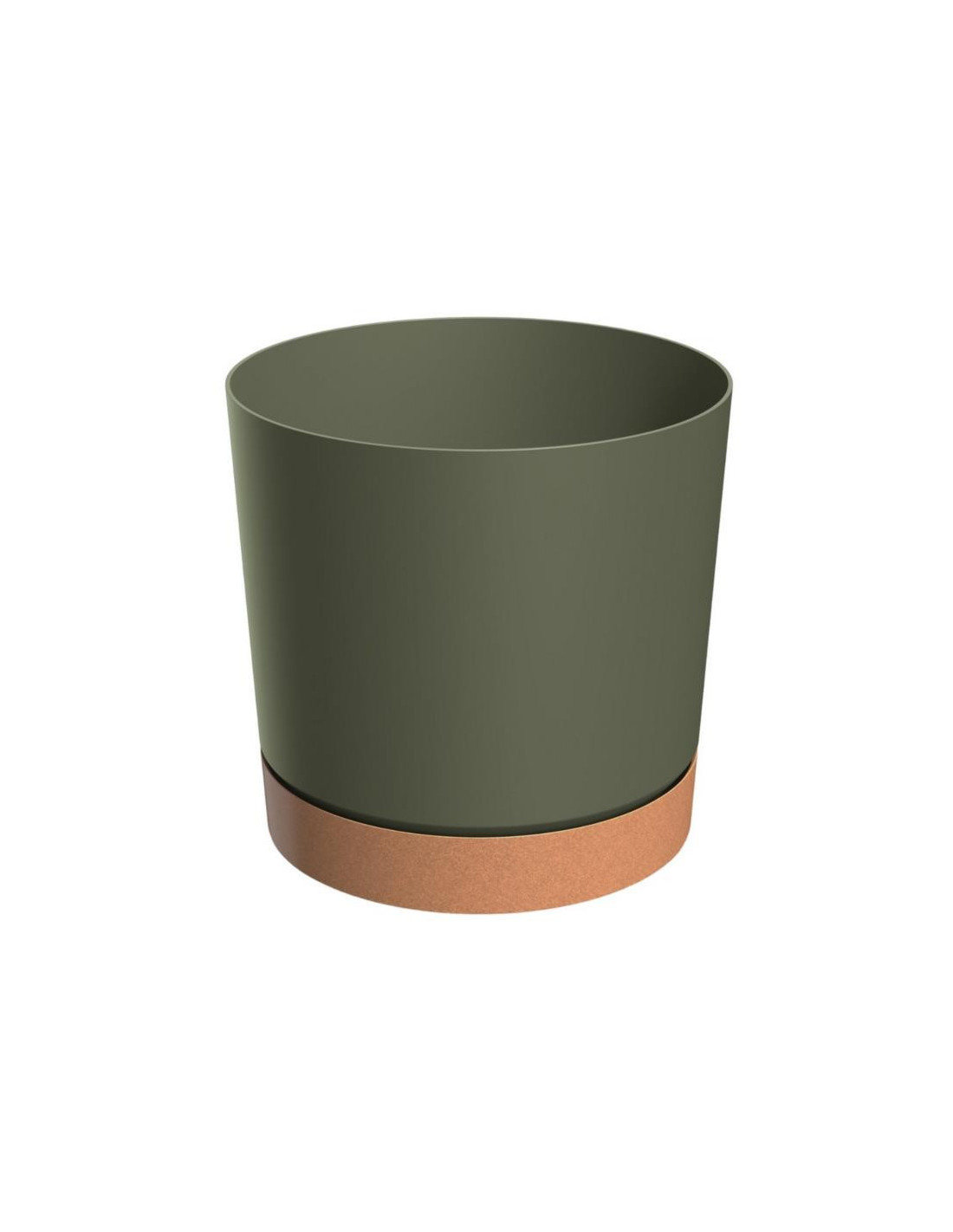 Doniczka Tubo wyposażona jest w podstawkę w kolorze Naturo, która zawiera do 33% naturalnego drewna.