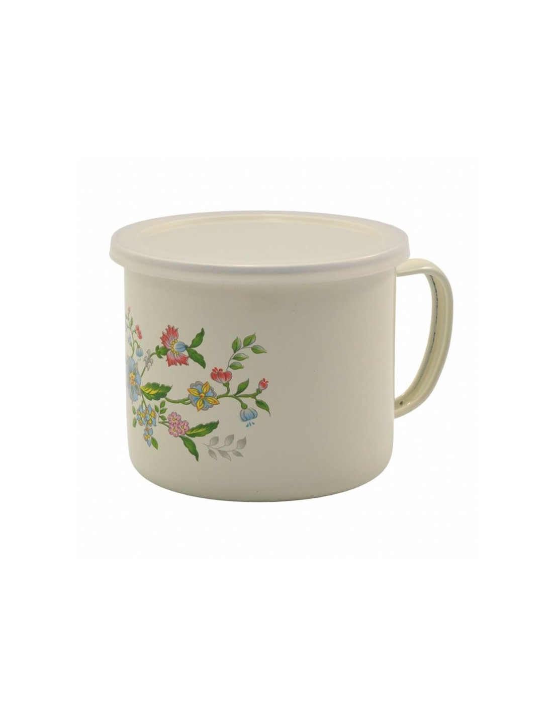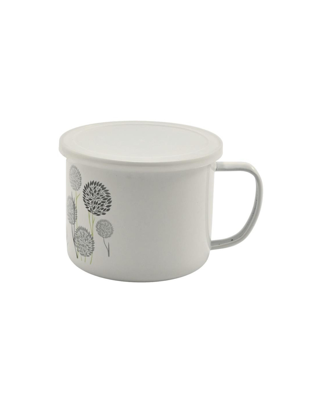Kubek emalia 12cm dmuchawce/kwiaty z pokrywką mix