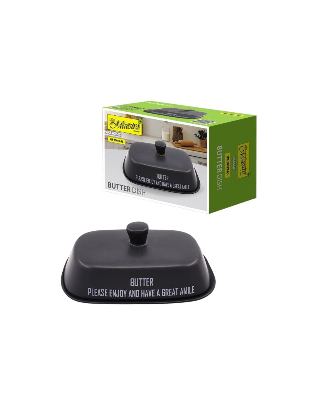 Maselniczka ceramiczna Maestro pomalowana w pięknym czarnym wzorze sprawia, ze świetnie nadaje się do kuchni urządzonej w stylu zarówno rustykalnym, jak i nowoczesnym.