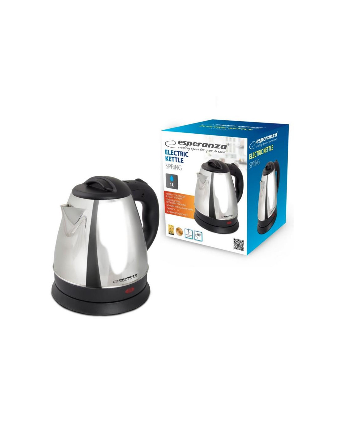 Bezprzewodowy czajnik Esperanza SPRING sprawdzi się zarówno na wyjeździe jak i w małej kuchni, gdzie nie zajmie dużo miejsca. Zagotujesz w nim tylko tyle wody, ile akurat jest Ci potrzebne, dzięki czemu oszczędzisz wodę oraz energię. Wykonany jest ze stali nierdzewnej w dwóch wariantach (stal szczotkowana oraz stal polerowana).