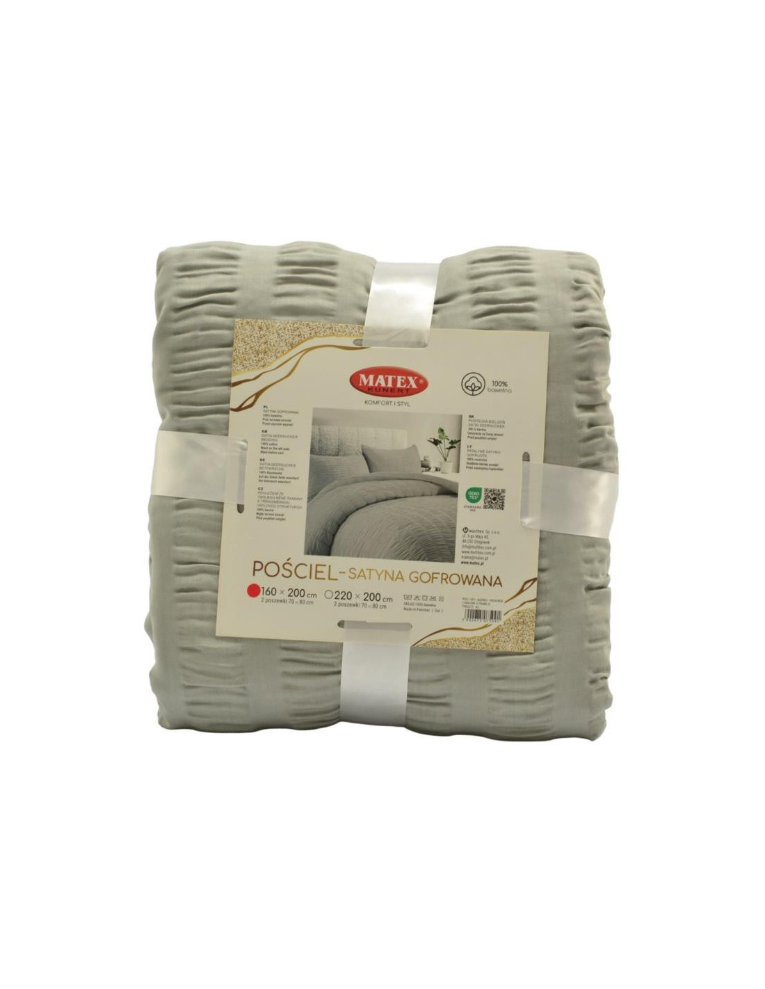 Pościel z satyny gofrowanej marki Matex to prawdziwy hit. Jest miękka, przyjemna w dotyku, a jednocześnie nie wymaga prasowania. Pościel wykonana jest w 100% z bawełny o splocie satynowym. Poddana jest procesowi gofrowania. Ma taką sama strukturę jak pościel z kory, jest jednak przyjemniejsza w kontakcie ze skórą. Gramatura tkaniny wynosi 130 gram/m2.