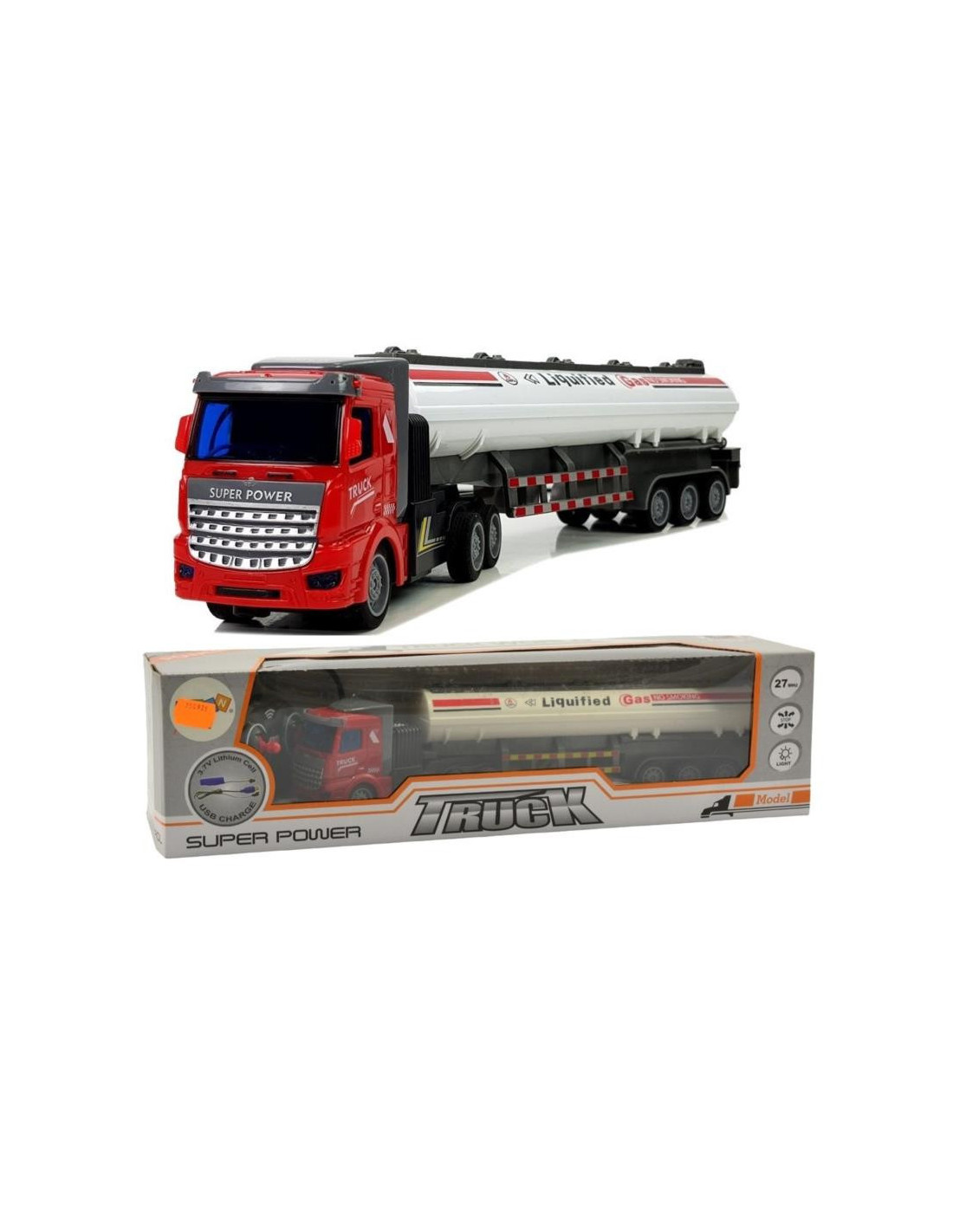 Zdalnie sterowany pojazd budowlany dla dzieci osadzony jest na bieżnikowanych kołach. Czerwona kabina z białą cysterną ozdobiona jest czarnymi i czerwonymi detalami, a także charakterystycznymi naklejkami. Pilot ma częstotliwość 27 Mhz. Obsługa pilota R/C jest bardzo prosta, dwa joysticki odpowiadają za kierunki. Z jego pomocą operator ciężarówki może kierować nią, zmieniając kierunki jazdy na przód/tył i prawo/lewo. Poruszając się w przód, wewnątrz kabiny oświetlają się niebieskie diody.