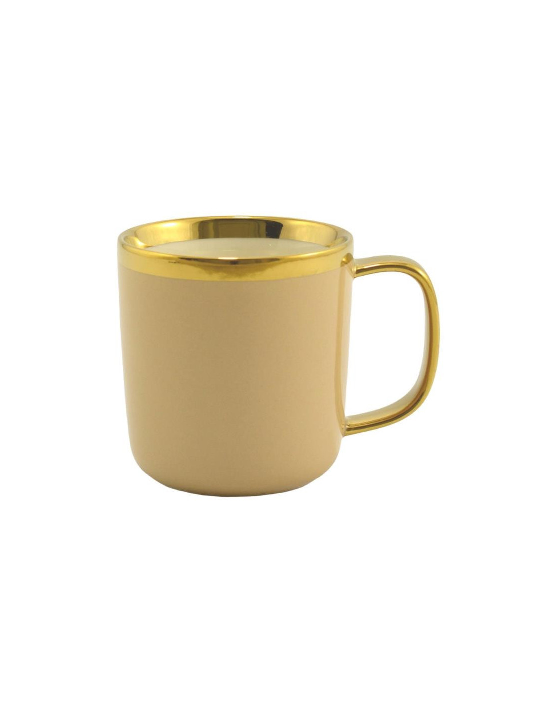 W kolorze beżowym ze złotym rantem i uchem. Elegancki i niepowtarzalny.