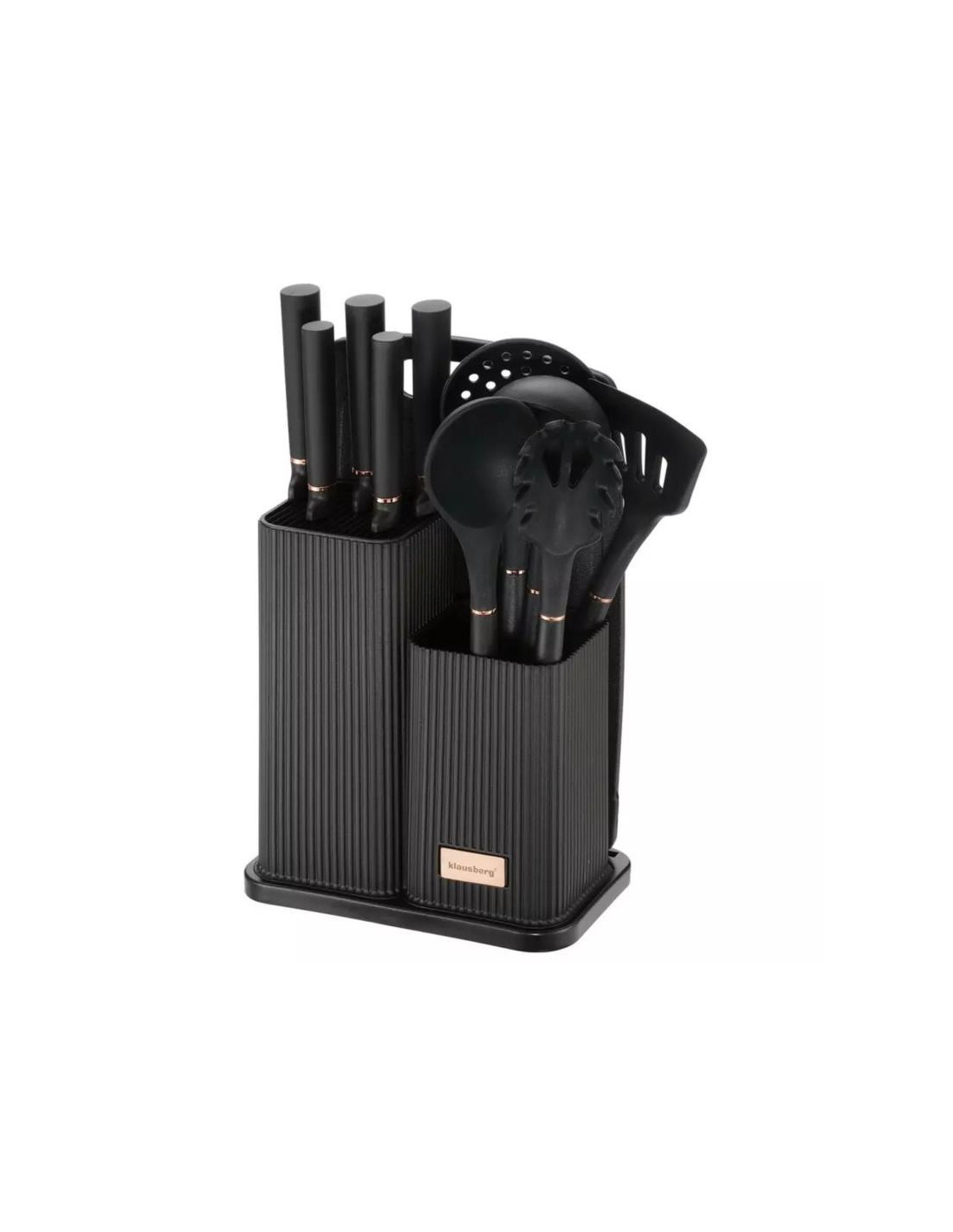Zestaw przyborów kuchennych, noży, narzędzi i deska do krojenia, kolor czarny, Klausberg, KB-7835