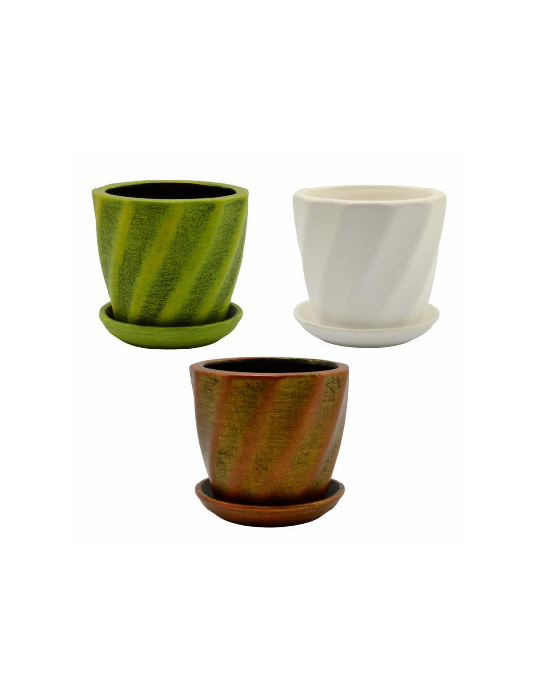 Doniczka ceramiczna z podstawką Skrętna 11x13cm mix