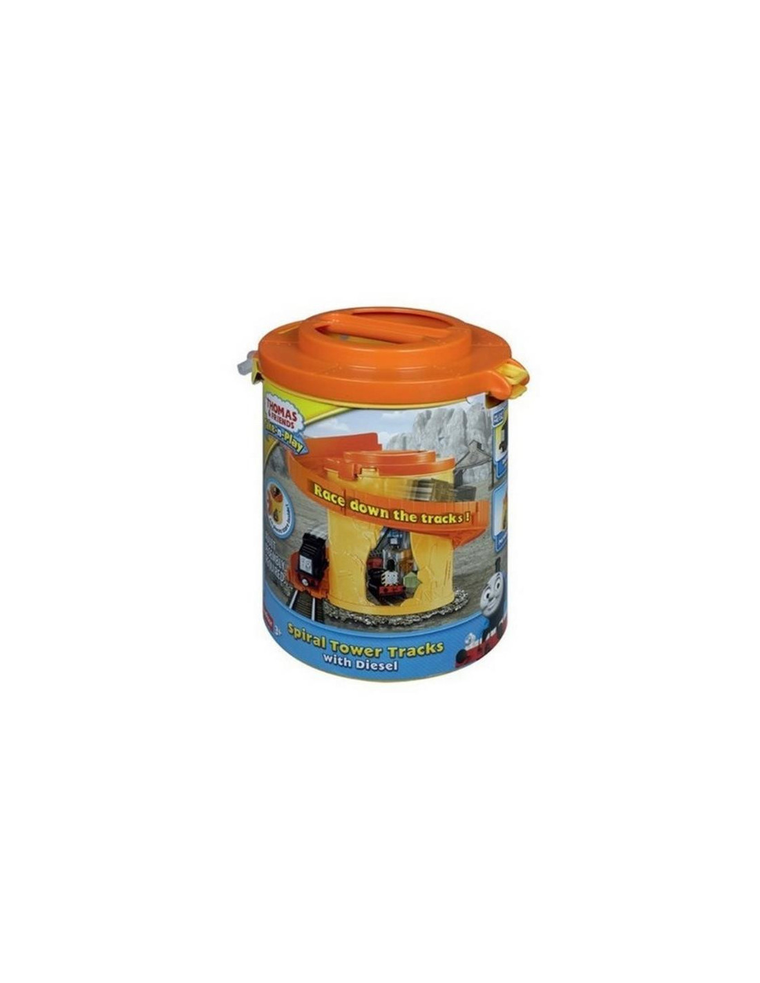 Jedź swoją ulubioną lokomotywą po spiralnym torze! W każdym zestawie znajduje się spiralna pętla torów, po której Twoje lokomotywy mogą mknąć w dół. Zbierz je wszystkie i ustaw jeden na drugim, aby cieszyć się godzinami zabawy w zjazdy po spirali. Wszystkie trzy zestawy można połączyć, aby stworzyć wyższą spiralną