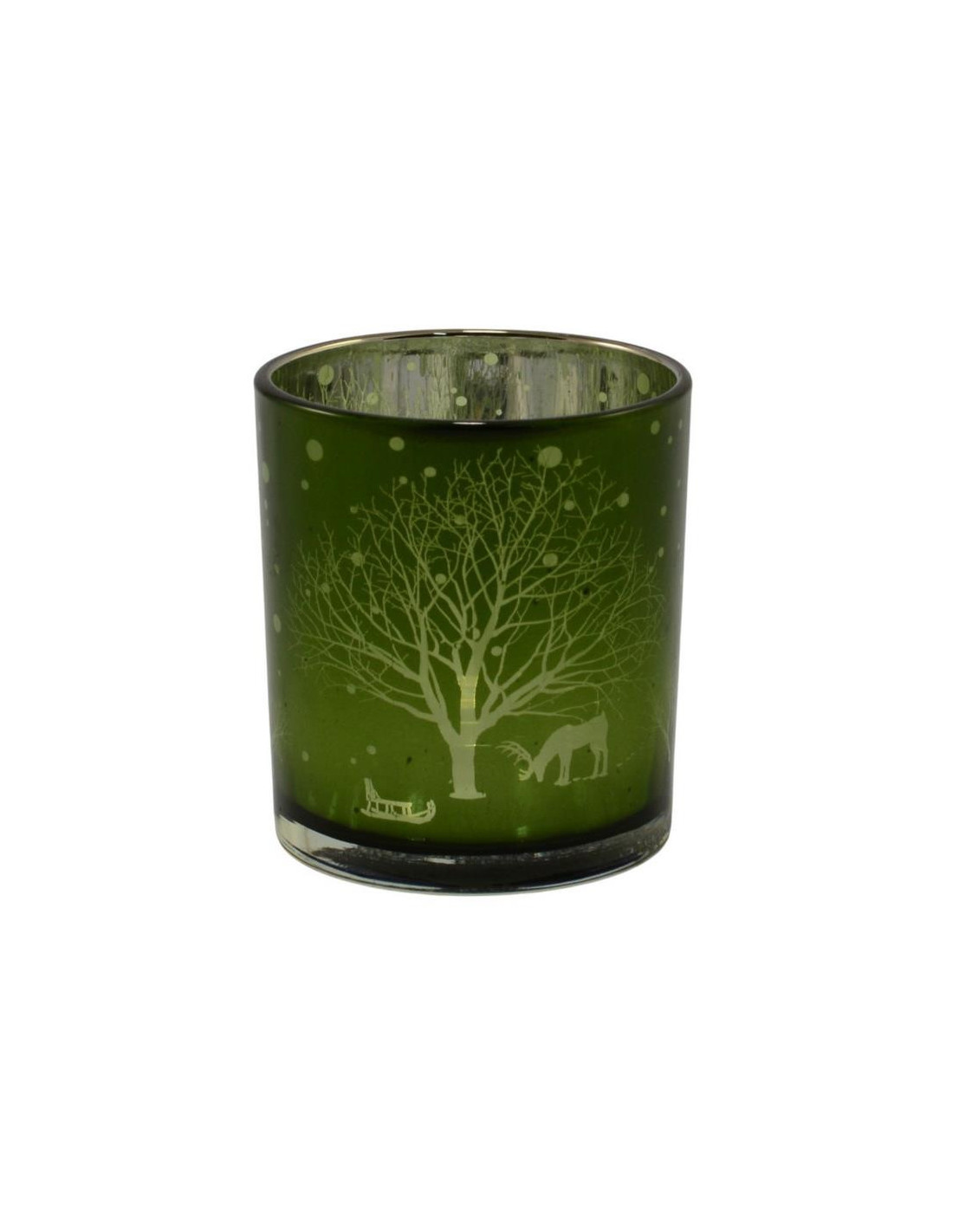 Świecznik szklany 8x7cm bożonarodzeniowy zielony YQY8323-1