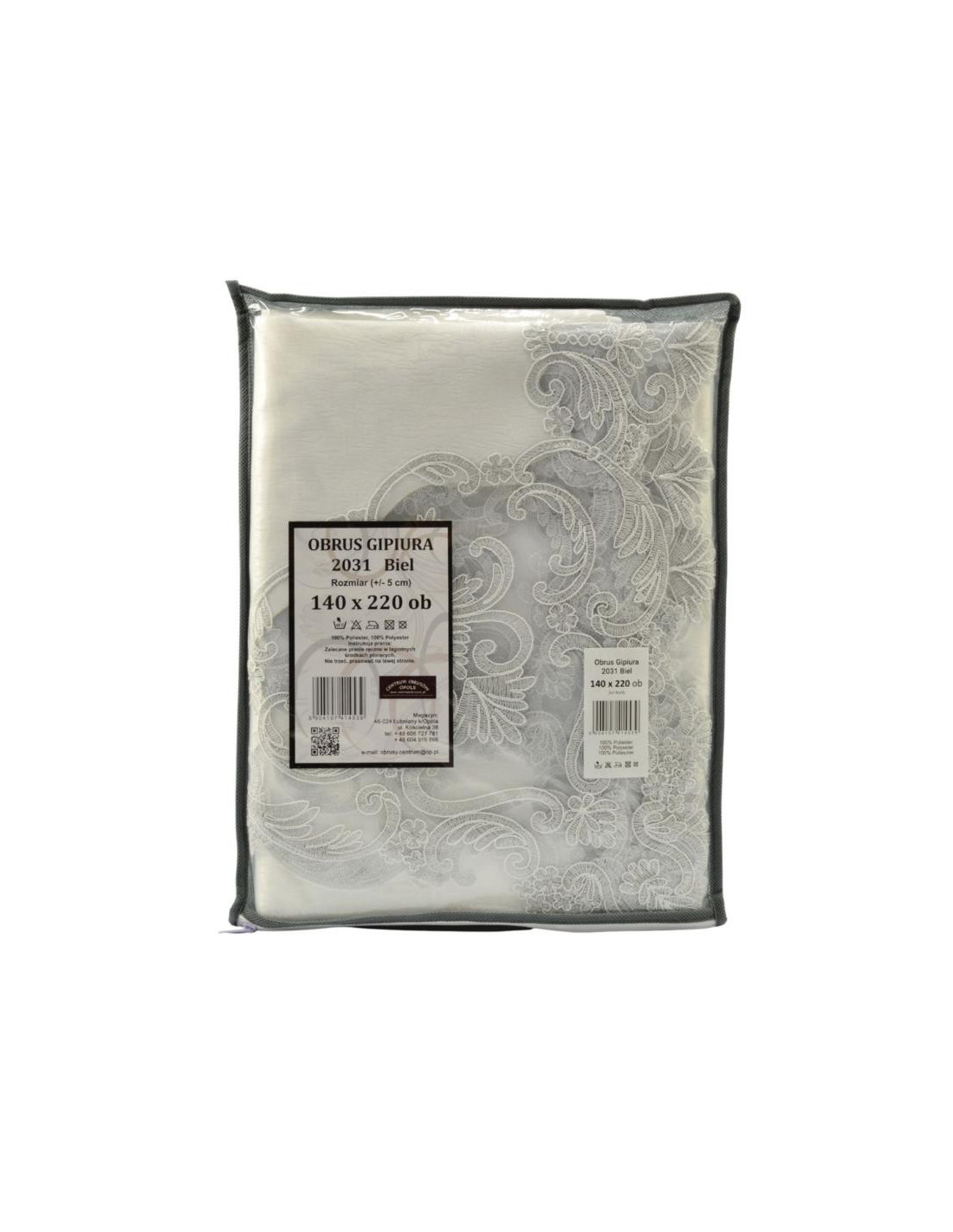 Obrus haftowany 140x220cm z Gipiurą biały 2031