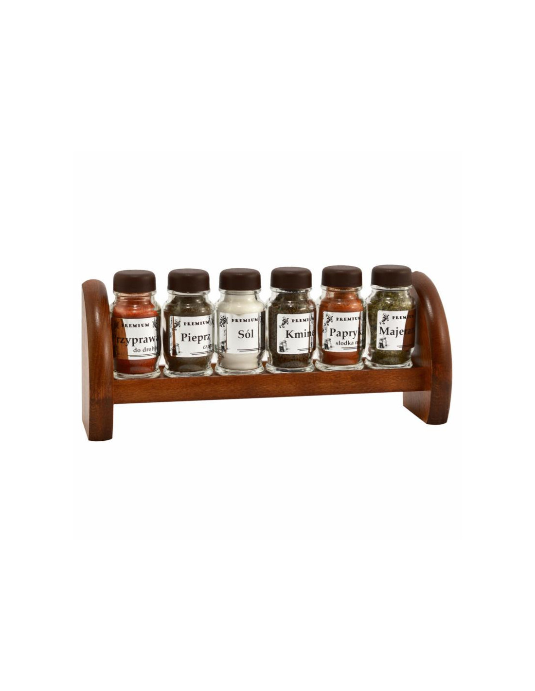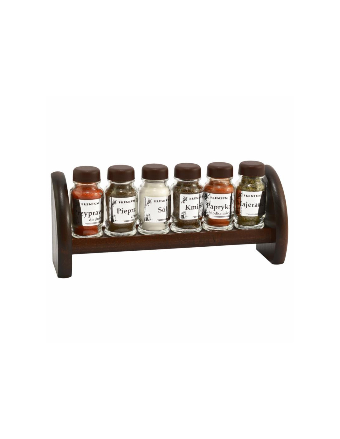 Przyprawniki 6 elementów na półce brązowe nakrętki mix