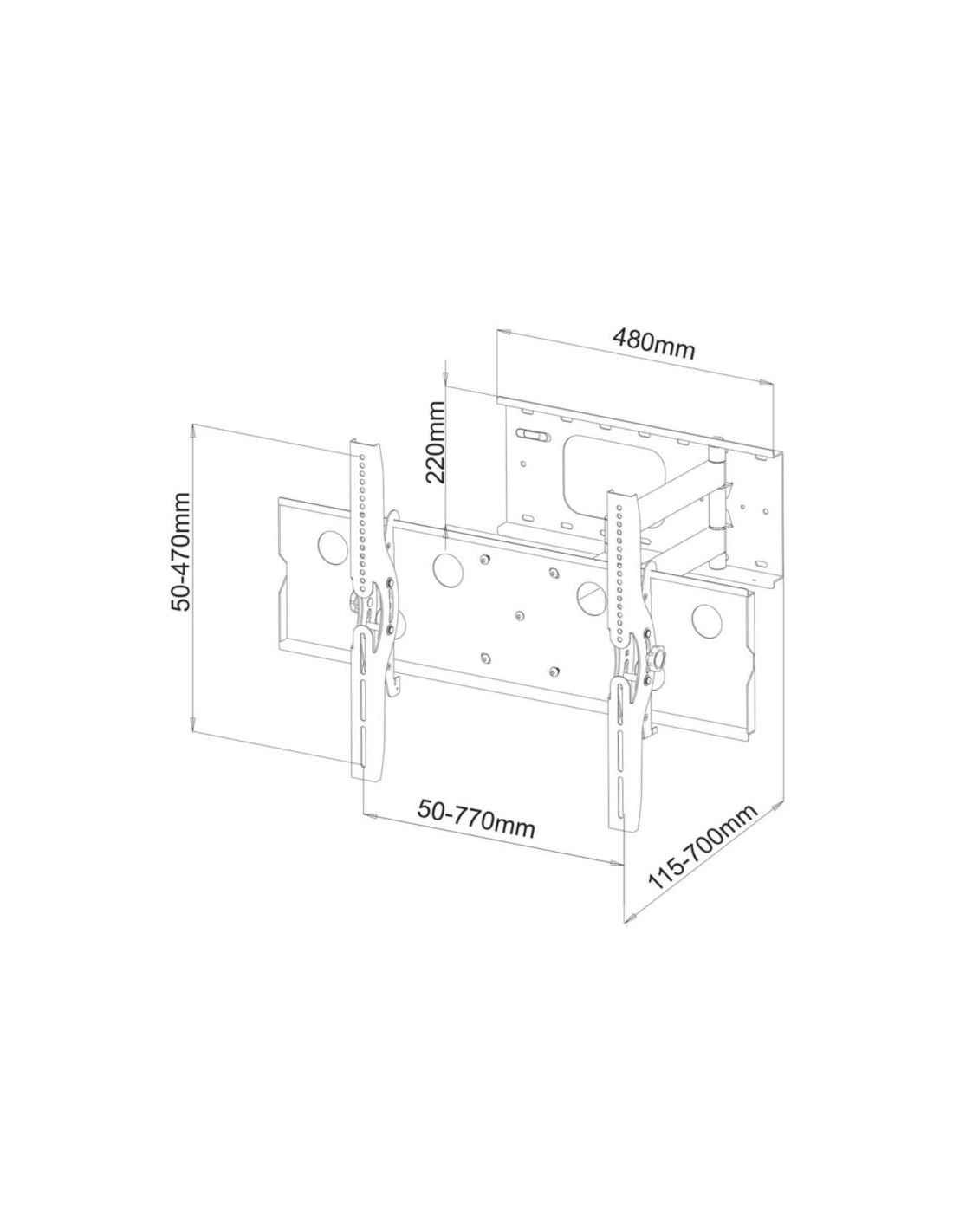 Wymiary uchwytu (szer x wys x głęb) 815 x 530 x 115-700 mm