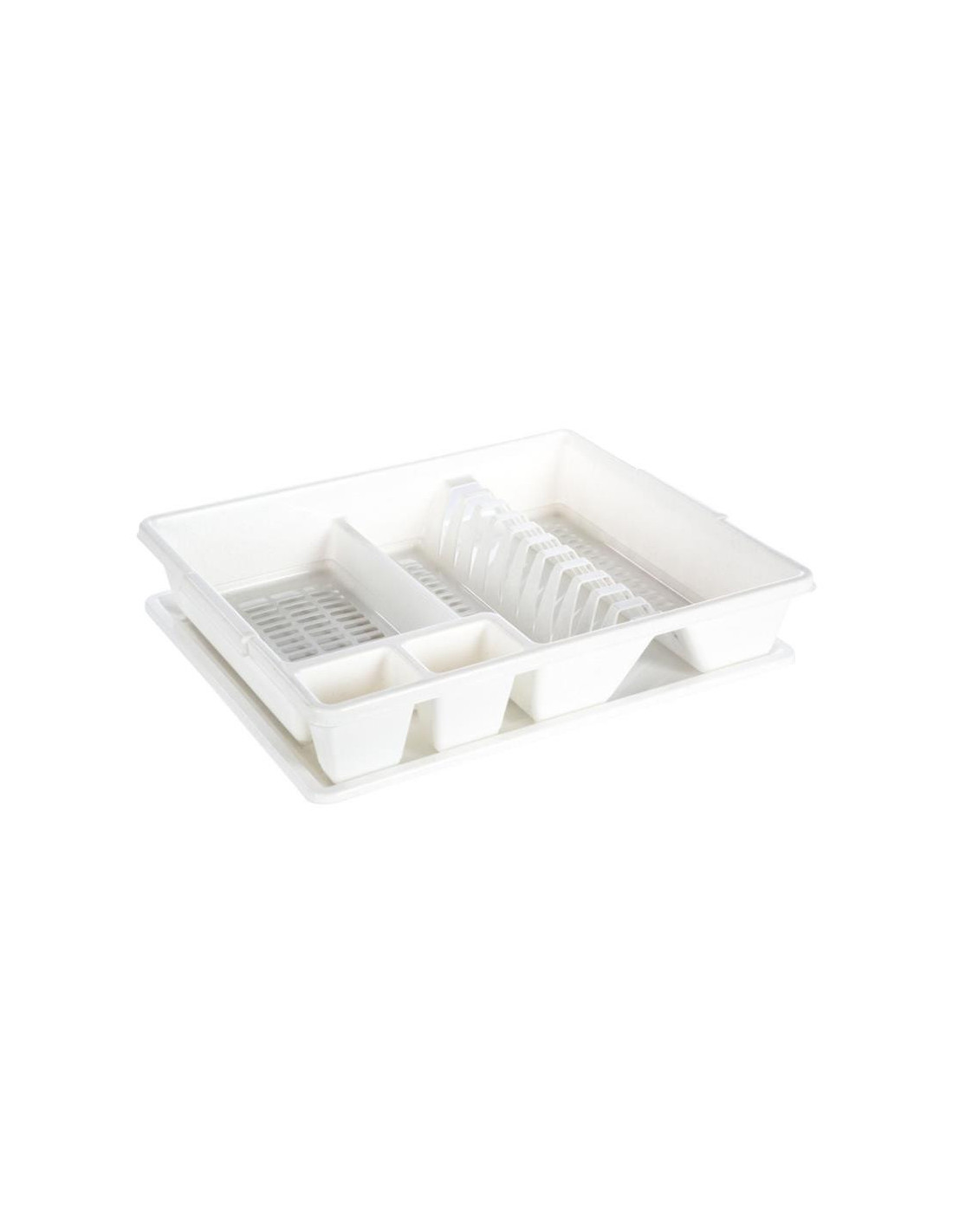 Suszarka do naczyń z dwoma przegrodami na sztućce oraz podstawką.