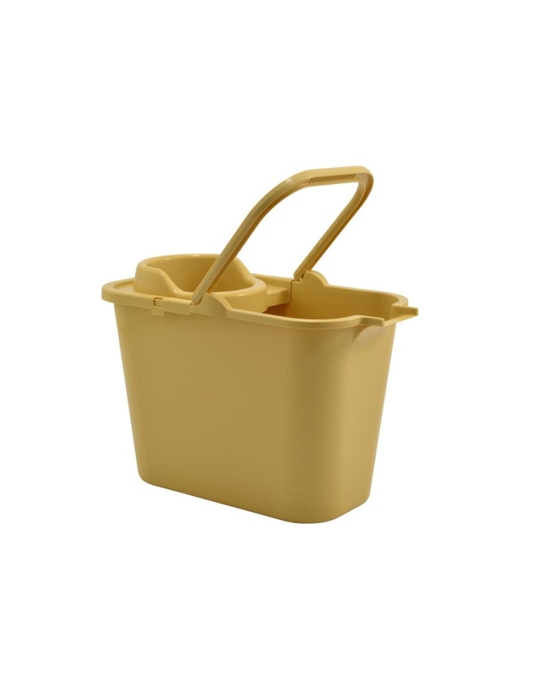 Plastikowe wiadro prostokątne, w kolorze beżowym, wykonane z wysokiej jakości tworzywa sztucznego, o pojemności 12 L.