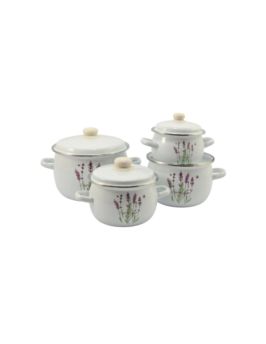 Garnki emalia 8 elementów Lawenda